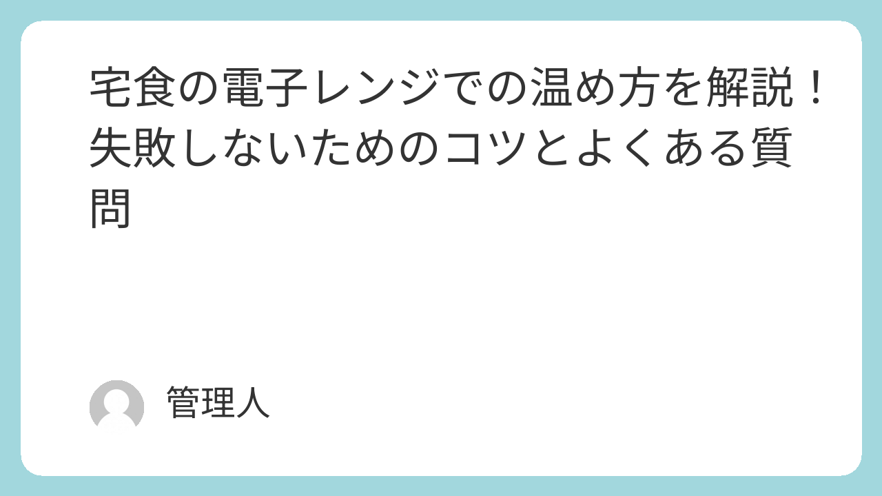 大多数の宅食は、500Wで、3〜5分程度が目安です。ただし、電子レンジのワット数や機種によって差があるため、必ず容器に記載された指定時間を確認してください。