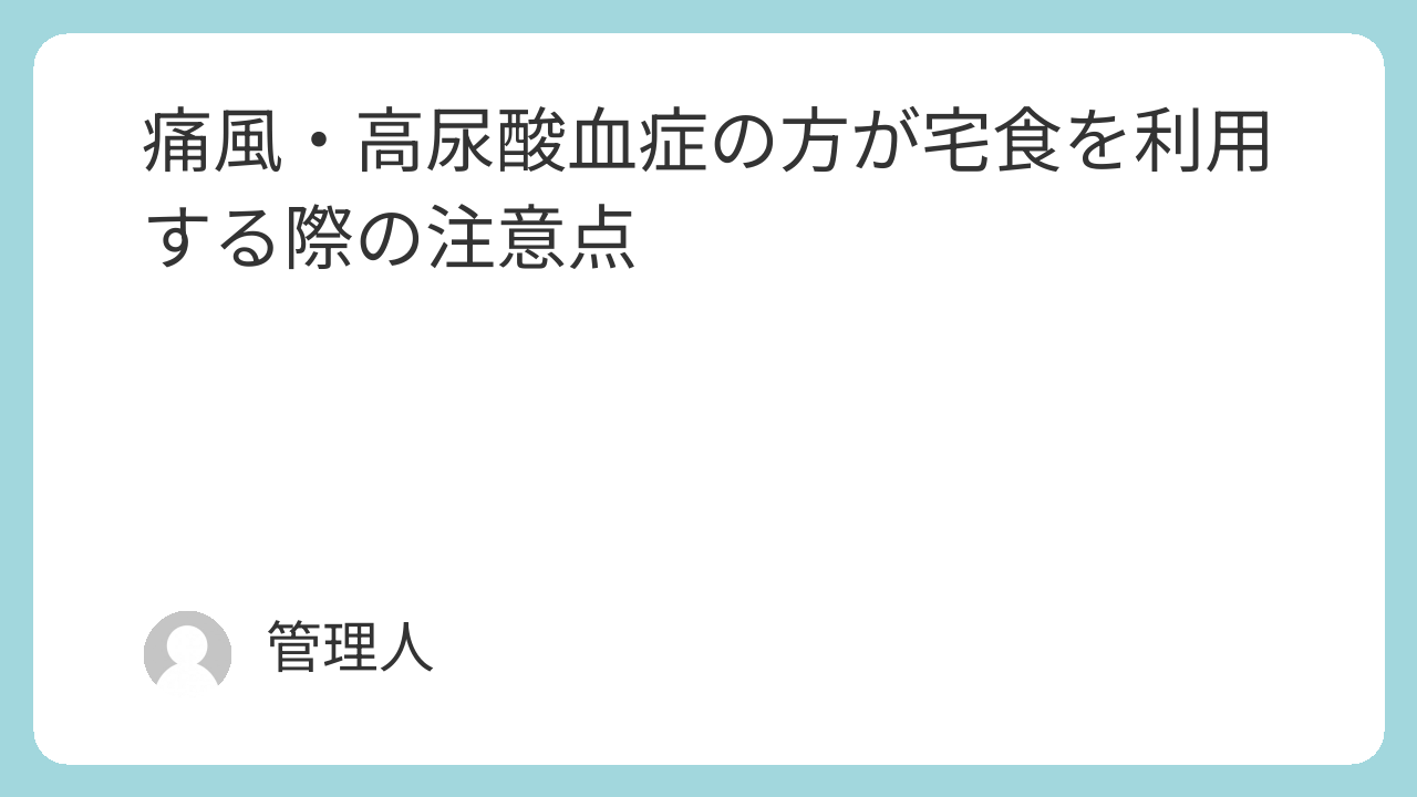 宅食サービスは、あくまで健康的な食生活をサポートするツールです。痛風の方が利用する際は、ご自身でメニューの原材料を確認し、プリン体の多い食材を避けるという自己管理が前提となります。